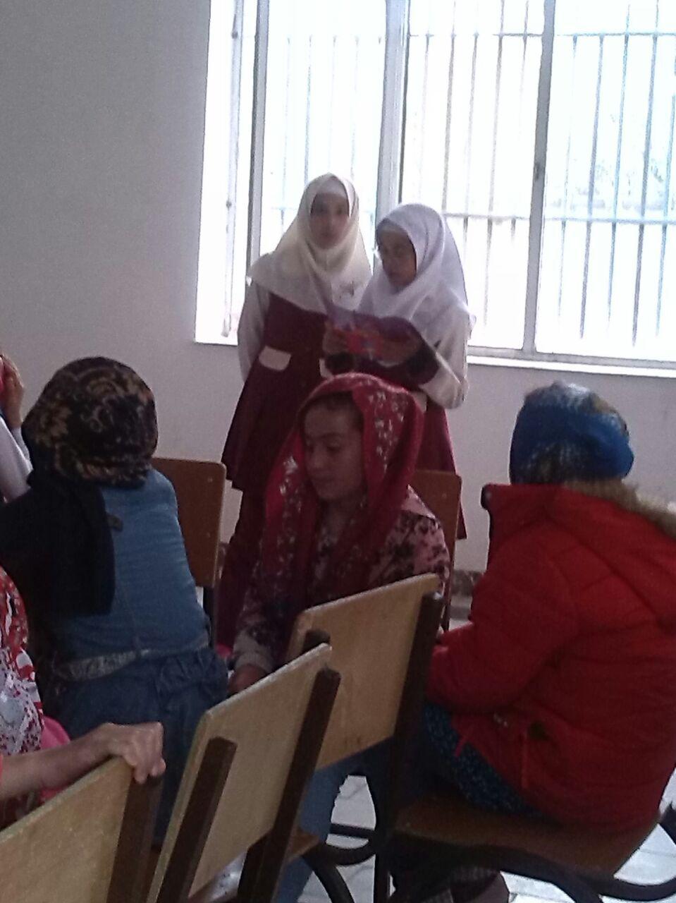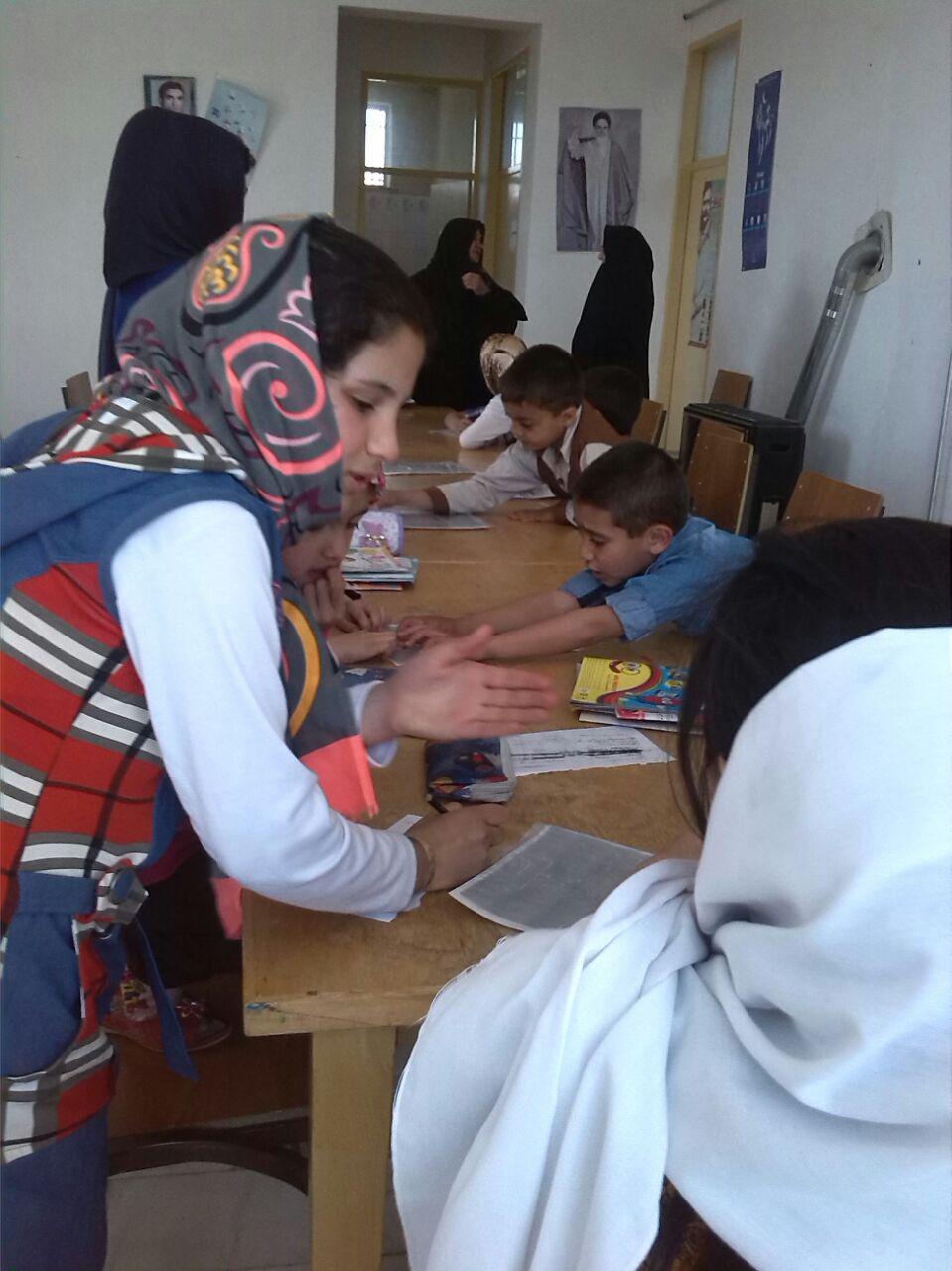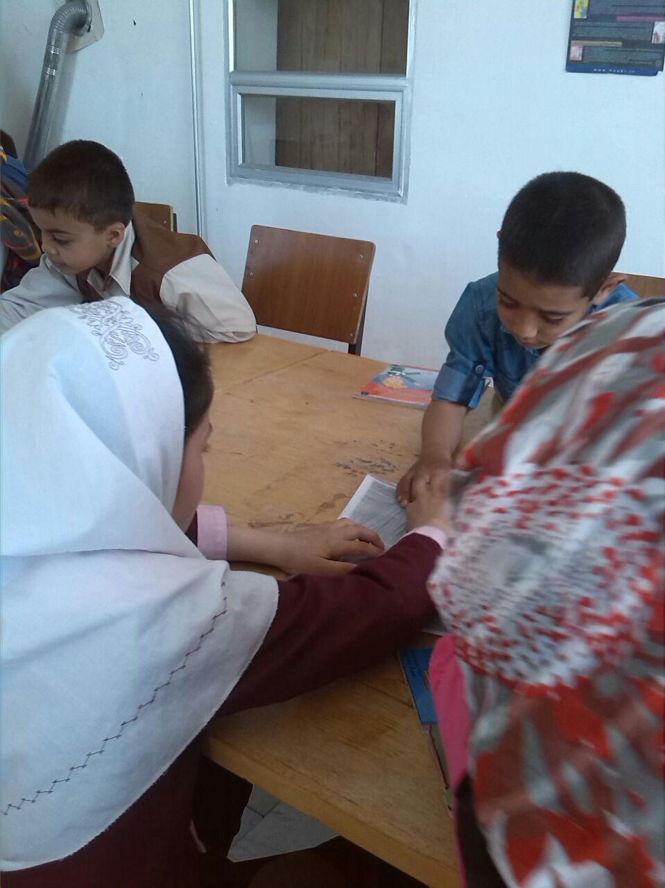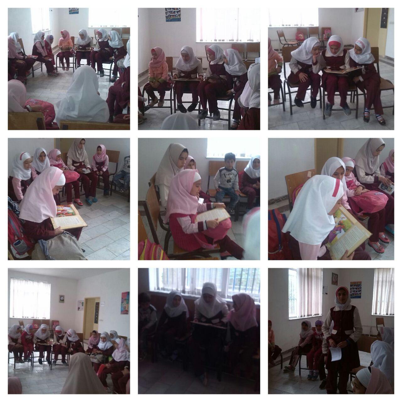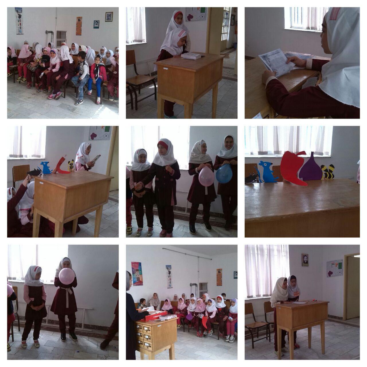 مورخ 13 اردیبهشت 95جمع خوانی کتاب هم روزنامه هم کلوچه .اول کتاب توسط کتابدار معرفی شد و بعد بچه ها هر کدوم یک بخش رو خوندند سه تا مسابقه هم اجرا شد اول اینکه حیواناتی که تو شعرها بود رو باید با دقت گوش میکردن و میشمردن .که به یک نفر که گفت جایزه اهدا شد .و دوم هر کس یک شعر رو کامل حفظ میکرد جایزه میگرفت .که به یک نفر که شعر خروس خاله رو حفظ کرد جایزه داده شد .و اخری هم هر یک از بچه ها یک شعر رو میخوند و بقیه باید گوش میکردن و یه تیکش یادشون مینوند و جواب میدادن در اخر هم پذیرایی و اهدای جایزه