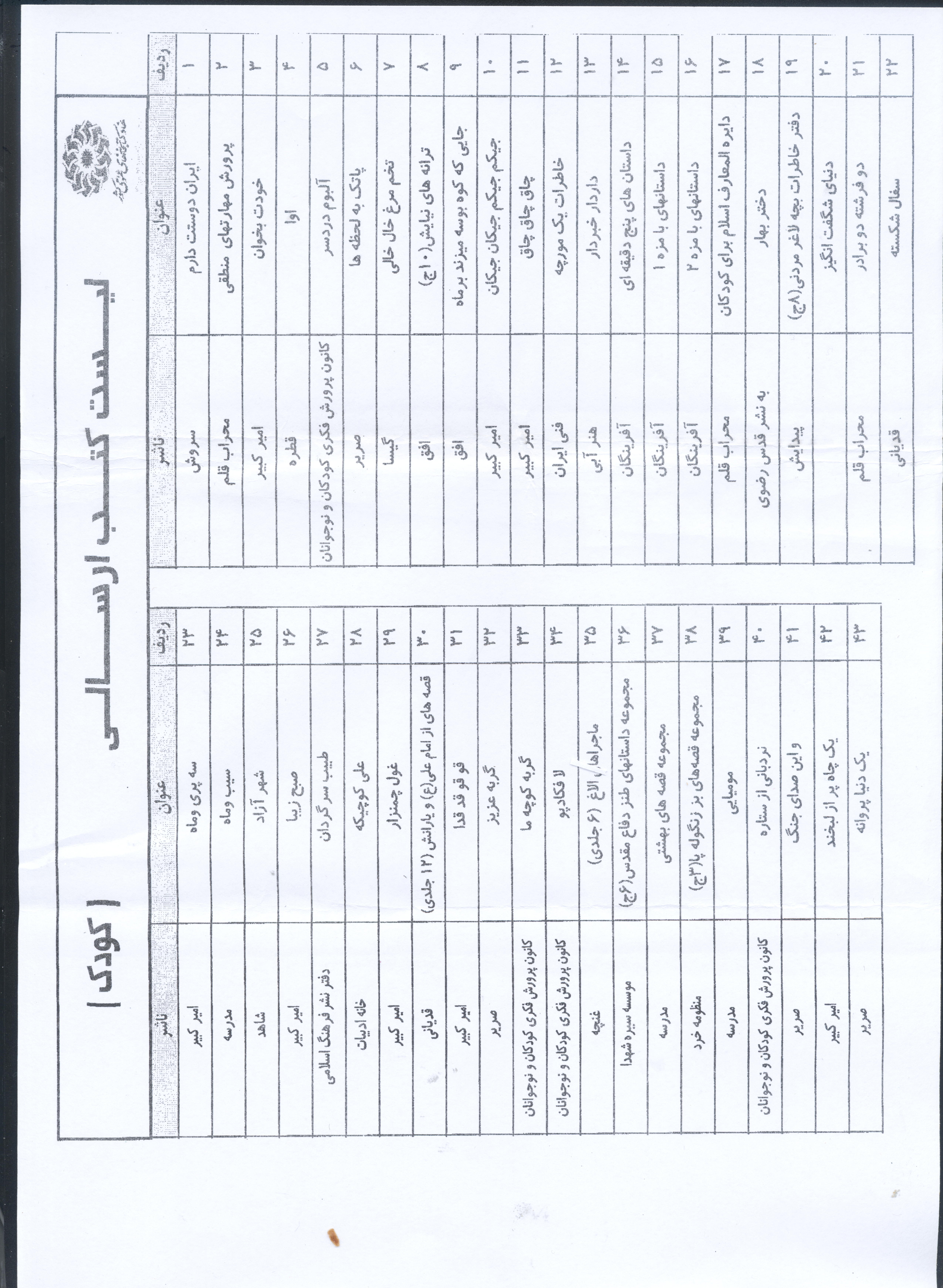 | رديف | اسم كتاب | نويسنده | ||