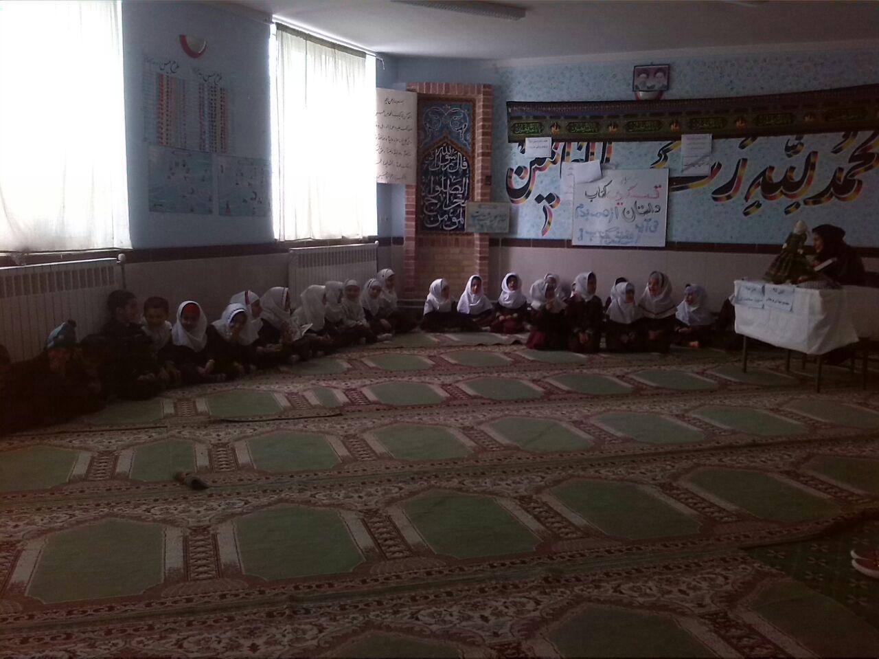 دومین روز هفته کتاب و کتابخوانی و قصه گویی عروسک قصه گو برای کودکان کلاس دوم پسران صبح و کلاس اول دختران و پسران ظهر
