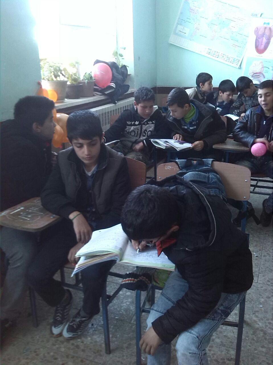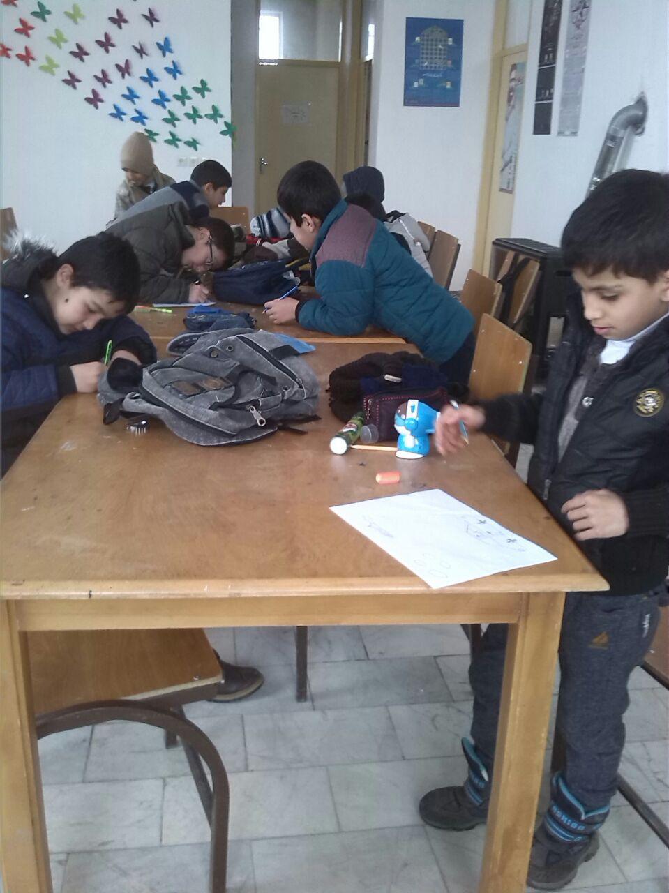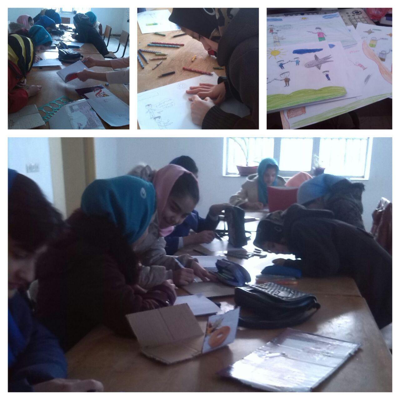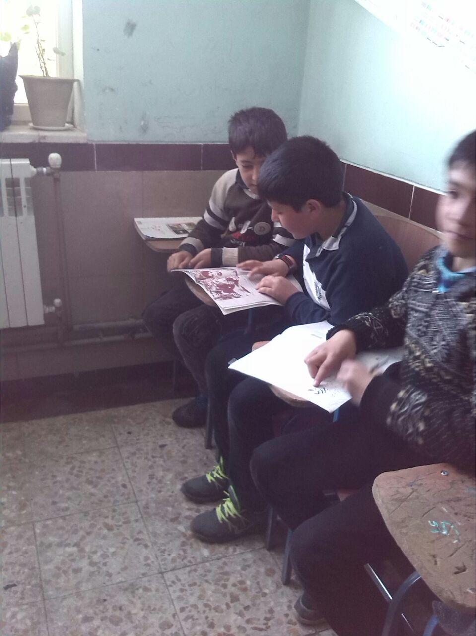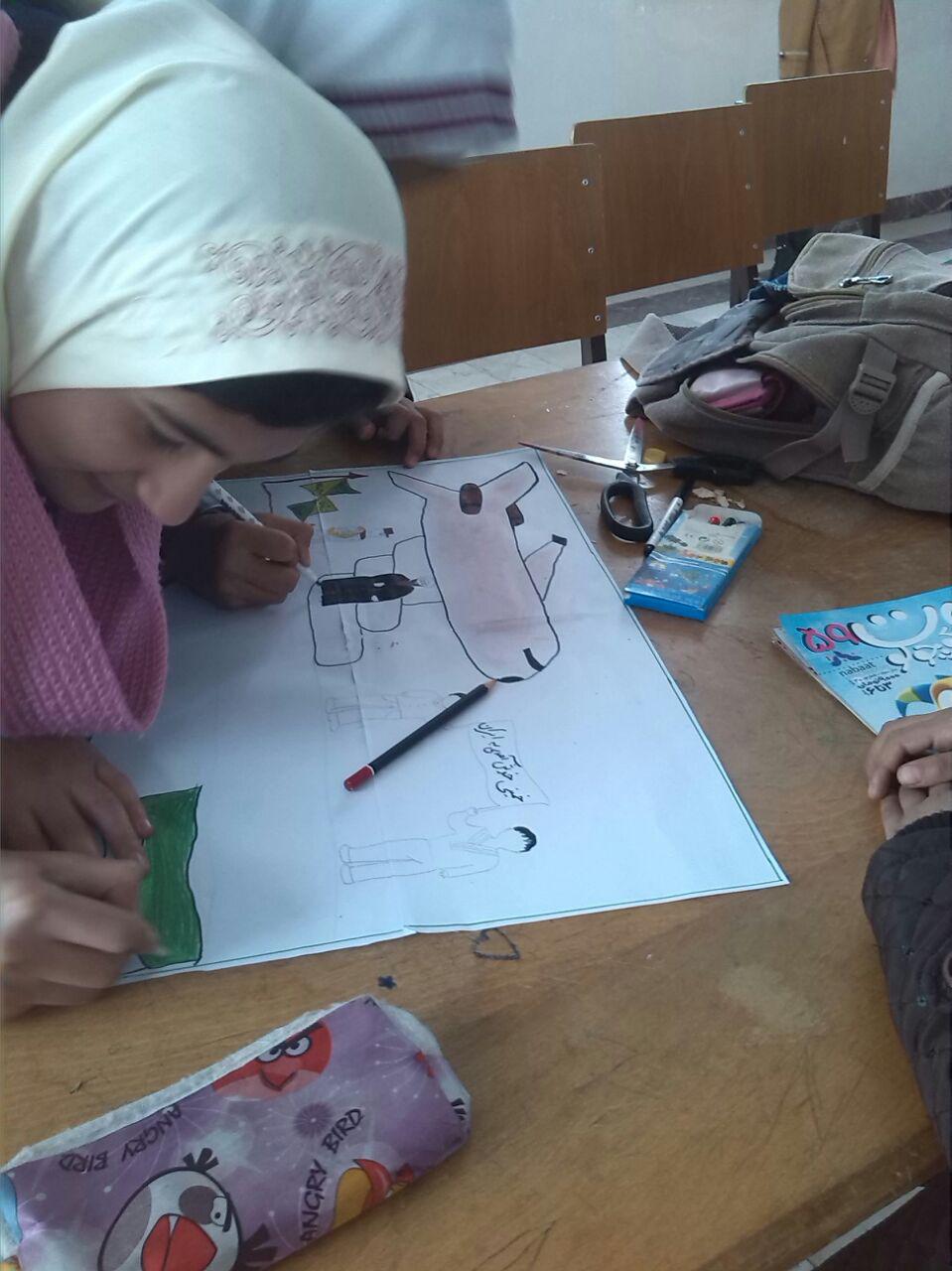 دانش آموزان سوم ابتدایی مدرسه شهید محمدی که قصه شاه و دیو برایشان بازگو شده بود روز بعد به کتابخانه تشریف آورند تا نقاشی قصه را کشیده و جایزه ببرند./