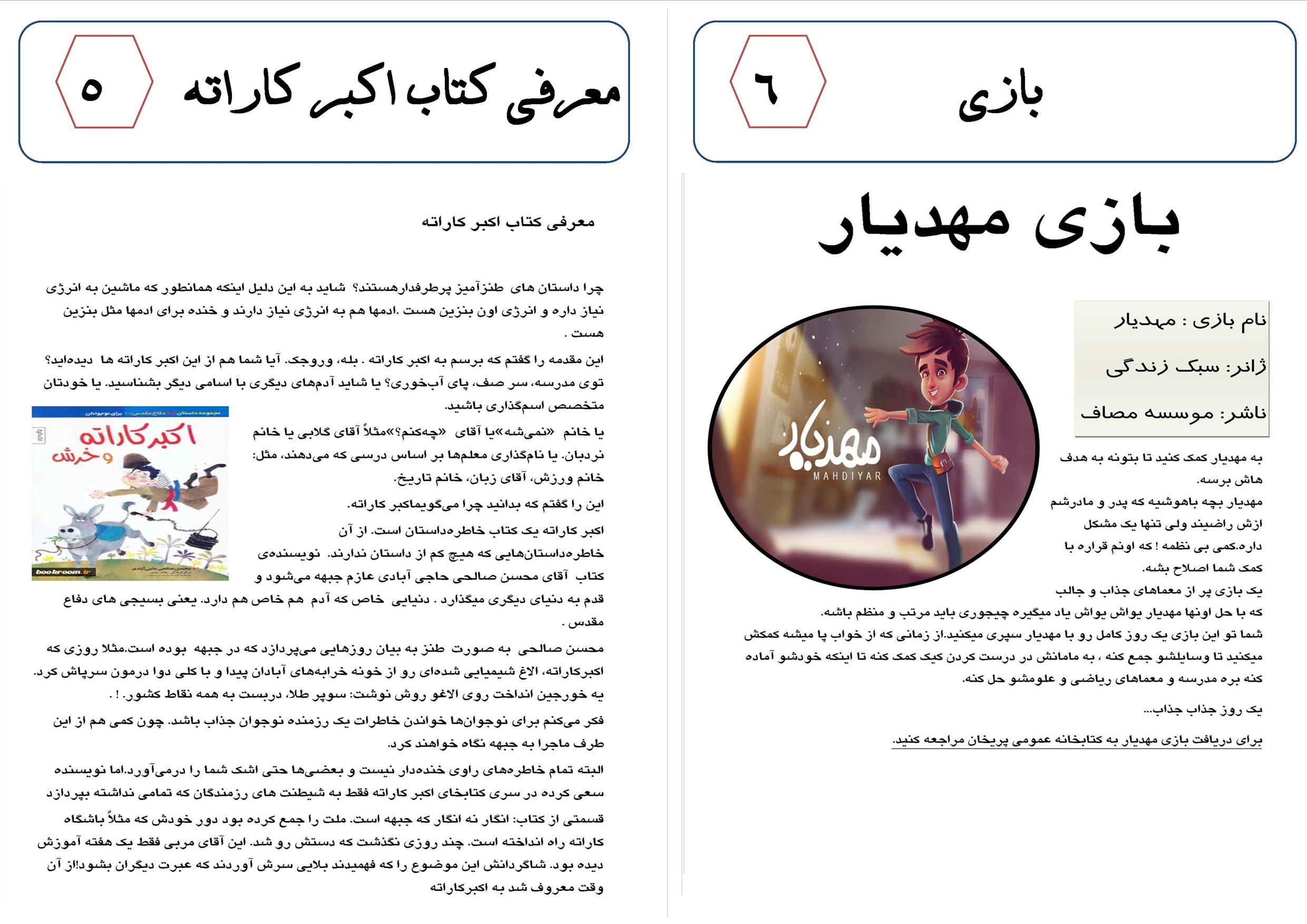 نشریه ای که آماده سازی شده جهت توزیع در مدارس در جهت ترویج مطالعه و آشناسازی کودکان با کتابخانه