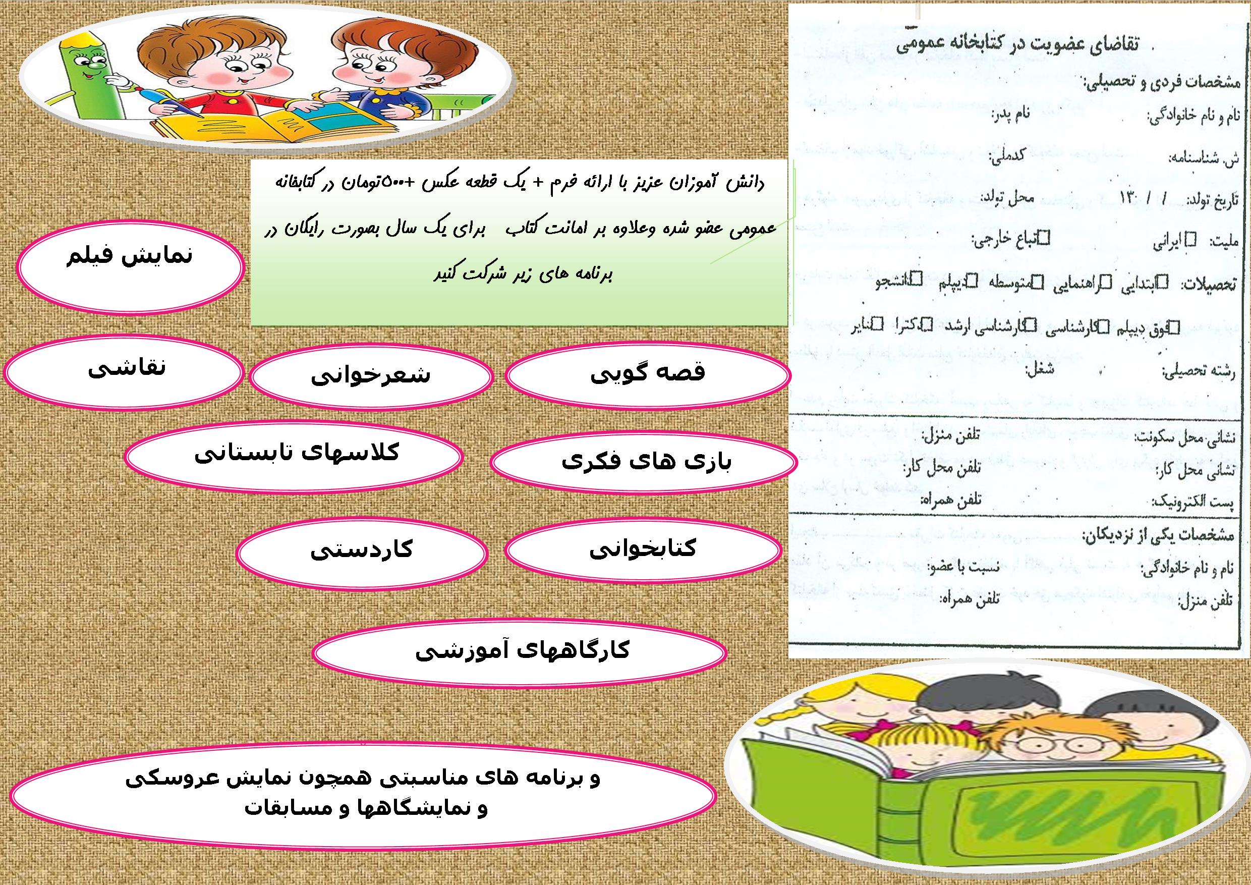 بازدید ، عضویت ، و آشنایی با کتابهابه وسیله رنگ آمیزی شخصیت کتابها24 آبان 96