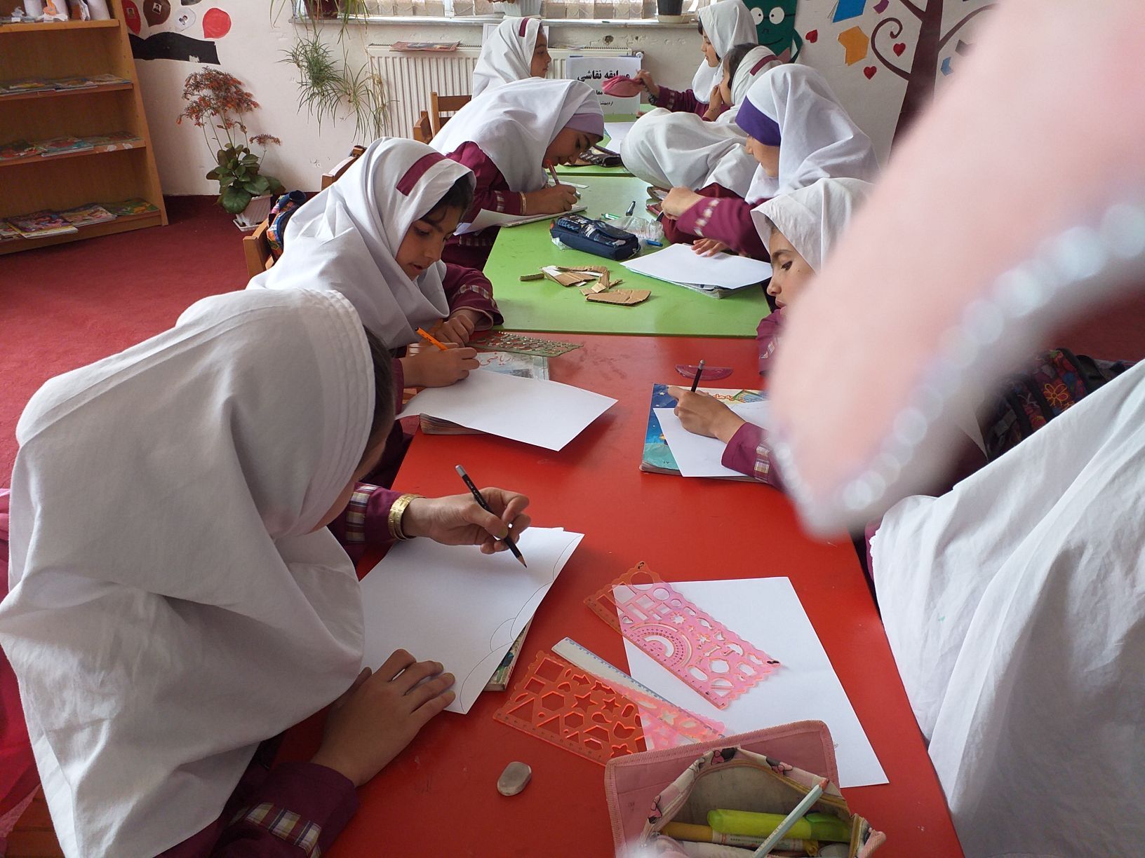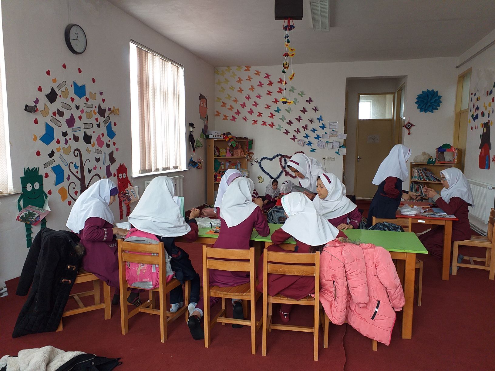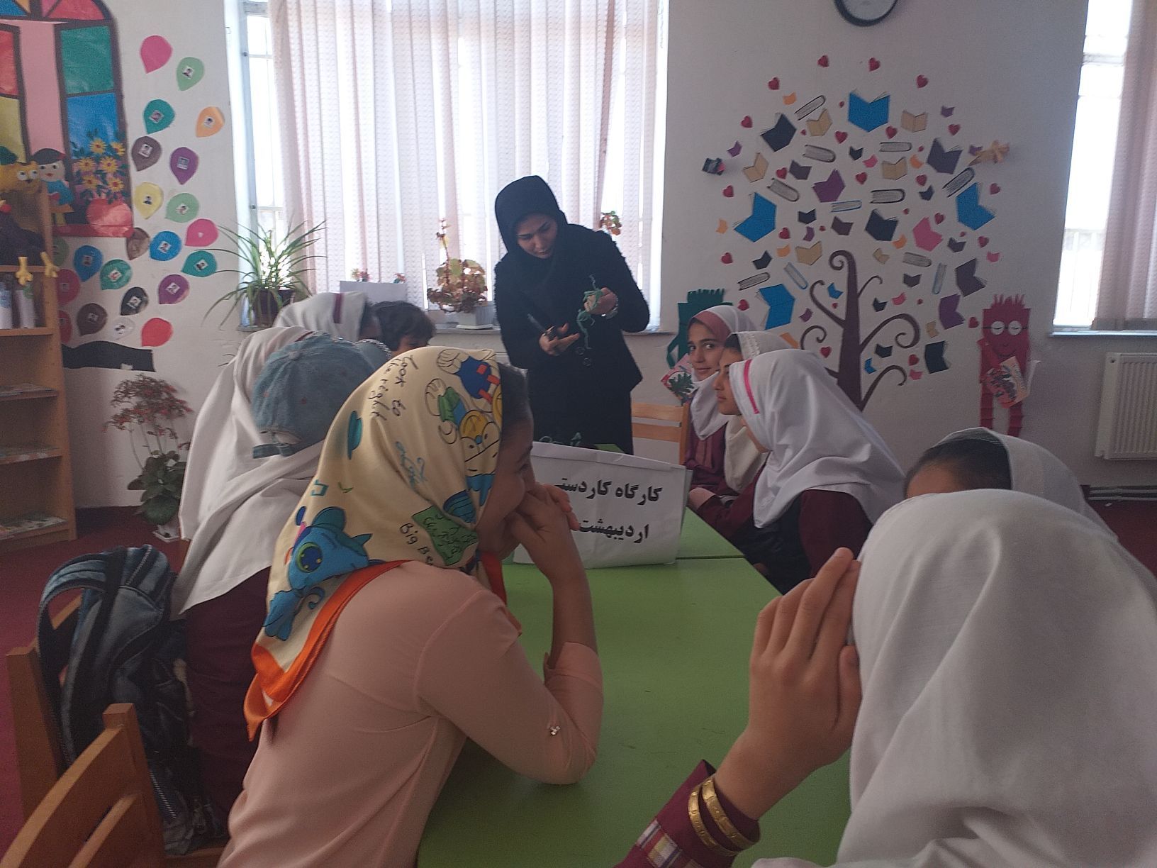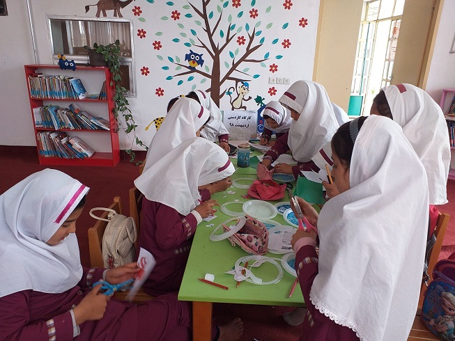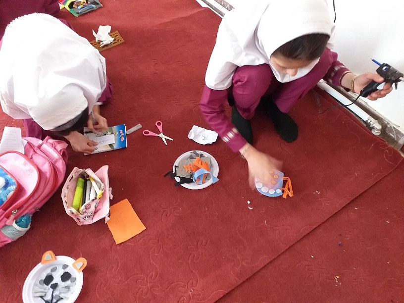 کارگاه کاردستی هم در کلاس دوم مدرسه شهید بایرامی برگزار گشت هم در کتابخانه