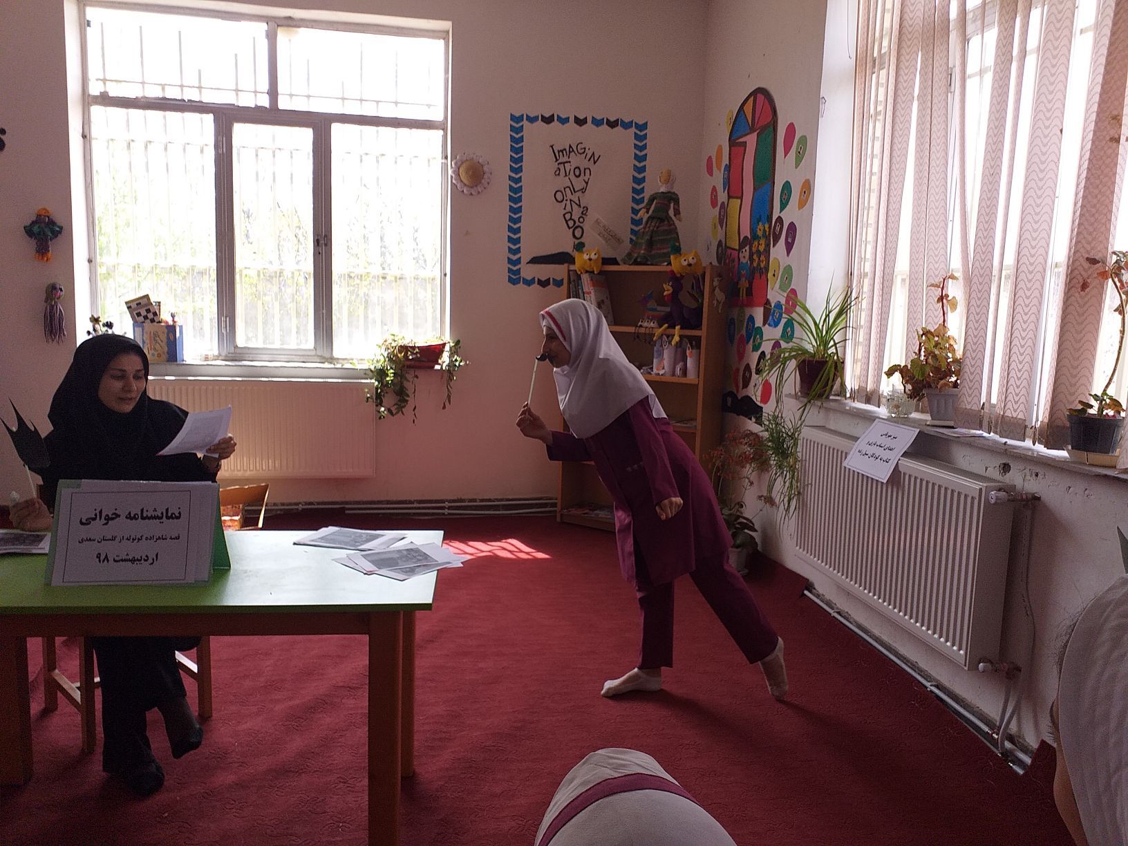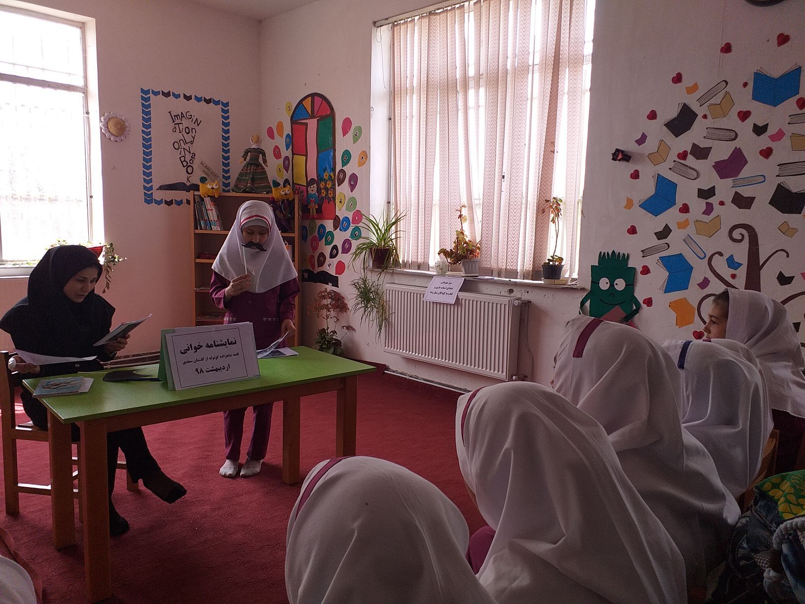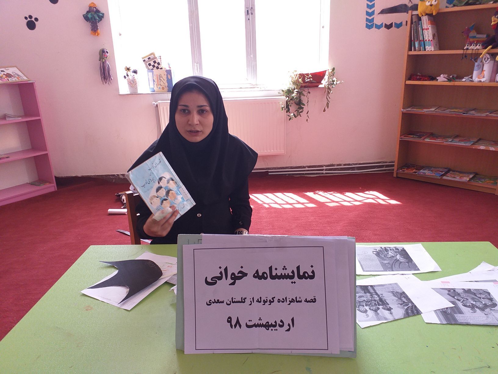 داستان شاهزاده کوتوله از گلستان سعدی 8اردیبهشت 98 با حضور جمعی از اعضای کتابخانه توسط کتابدار و یکی از دانش آموزان کلاس ششم نمایش نامه خوانی گشت البته کتاب قصه های گلستان و ملستان نیز معرفی و چند قصه بصورت خلاصه بیان شد مثل قصه شمارش ریش و ...