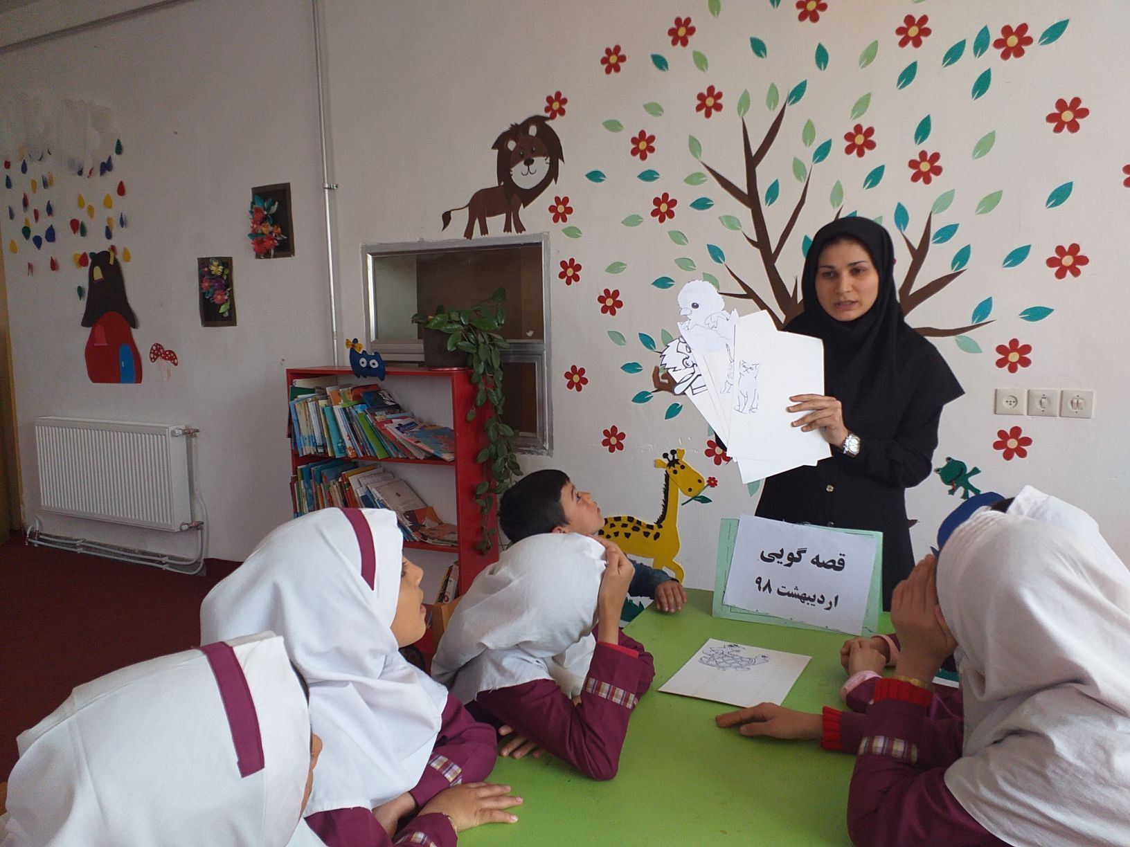 مورخ 7 اردیبهشت 98 با حضور 11نفر از اعضا ابتدا قصه لاک پشت سخت پوست قصه گویی شد و سپس تصاویری در اختیار شکت کنندگان قرار داده شد که آنان بصورت گروهی برای یک تصویر یک قصه بنویسند