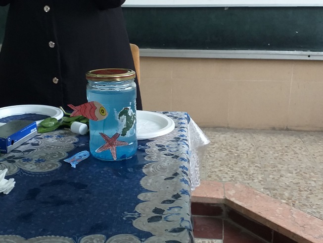 در این کارگاه آزمایشهای گردباد در بطری به وسیله آب و چند قطره مایع ظرف و شویی و اکلیل نشان داده شدو همچنین رنگین کمان در لیوان که به وسیله آب کلم و سفید کننده و صابون و سرکه نشان داده شد بعد دانش آموزان هر کدام خود امتحان کردند