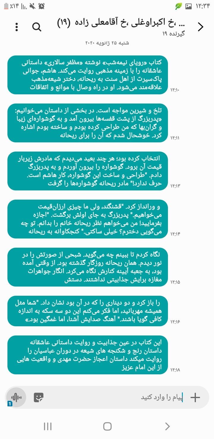 یقین داشتیم رفتنش را برگشتی نیست، هر دو مان؛ من و مادر. آن گونه که او اسبش را تجهیز میکرد و شمشیر و سپر و سنان برمیداشت، آن گونه که او برحذر میداشتمان از فریب عبیدالله بن زیاد، آن گونه که او سر تا پایمان را مینگریست به وقت وداع، آن گونه که او میسپردمان به خدا و سپس به سعید، یقینمان شد رفتن پدر را برگشتی نیست. سعید قابل بود، و میشد اهل خانه را آسودهخاطر به او سپرد ولی از روزی که شیعیان کوفه نامشان را نوشته بودند پای رقعه، ایام به خوشی سپری نمیکرد. مردد بود و مضطرب. خوف از جانش خارج نمیشد، اما پنهانش میداشت. عزلت گزیده بود؛ در خانۀ خودش، لیل و نهار. هر بار دیدمش سخنی نگفت، جز آنکه زیر لب زمزمه کرد: - به سوی ما بشتاب، امید است خداوند ما را به واسطۀ شما بر حق مجتمع گرداند...