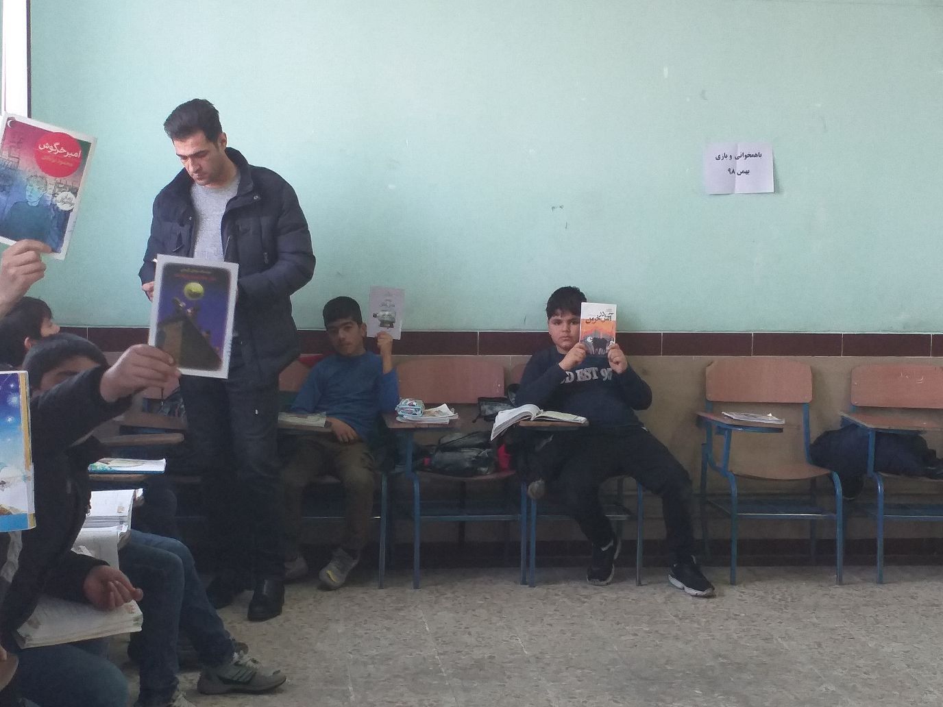 همیشه برای این دانش آموزان کتاب های کم حجم بخش کودک برده میشد اینبار که از بخش نوجوان کتاب برده شد از دیدن حجم کتاب ترسیدند اما کمی که از داستان هر کتاب برایشان گفته میشد علاقه مند میشدند برای یک کتاب یک ماه به آنها وقت داده شد بخوانند