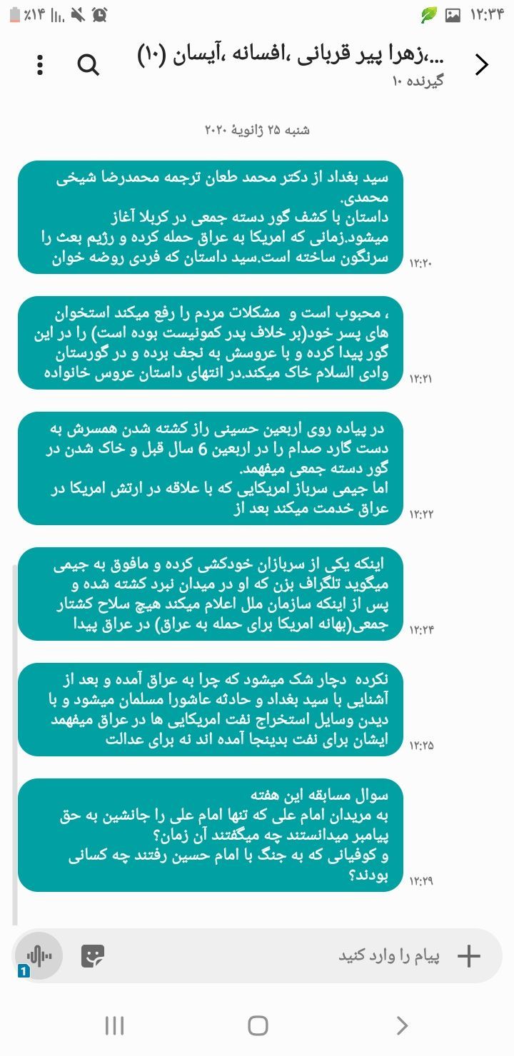3 بهمن 98 با شرکت 14نفر از نوجوانان کتاب زندگانی چهارده معصوم معرفی و بخش مربوط به حضرت زهرا (ص) جمع خوانی گشت و در باره زندگانی این بانو بحث گشت و کاردستی شمع نیز ساخته شد.